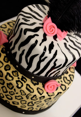 I got a call last week requesting a special birthday cake incorporating a leopard print…something fashion forward with lots of sparkle and glamour. The cake is dark chocolate with a layer of chocolate ganache and also a layer of raspberry Chambord buttercream (yes it has liquor in it and is SUPER yummy). The leopard print has 24 gold painted in each black spots and Swarovski crystals are on the black bands. It’s hard to see but there is also edible glitter sprinkled on the cake too. This was fun!