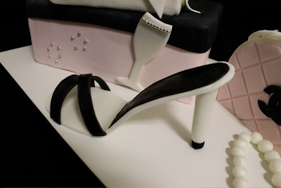 First of all, I love what I do..so much fun! This cake was a blast making. I have been wanting to do a shoe cake, and this was the perfect opportunity. I was told the birthday cake was for someone who was the queen, loved to shop, loved shoes and champagne. I love how this came together. The cake flavors were, vanilla cake with raspberry buttercream, chocolate cake with chocolate buttercream and chocolate cake with chocolate ganache and raspberry Chambord buttercream. The surprise birthday party is tonight and is being catered by the Cornerstone Culinary Kitchen.