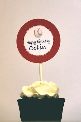 I had the pleasure of making Colin’s 6th birthday cake last week. Baseball theme…right up my alley! I also made cupcakes for his class and designed a topper for the cupcakes to match the baseball theme.