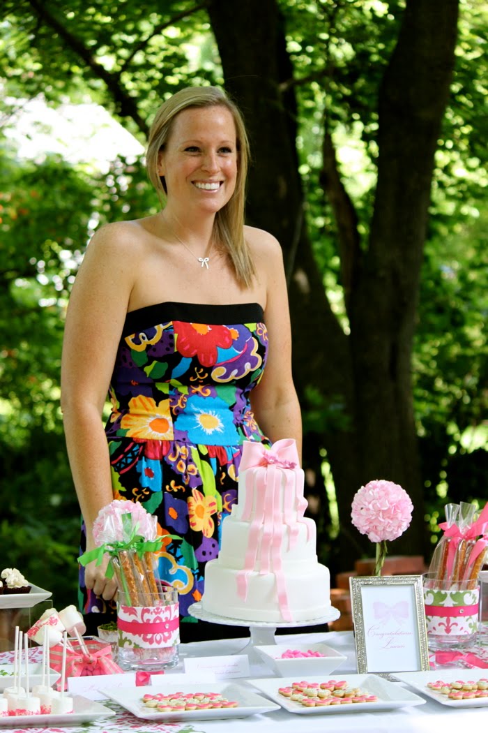 One of my very special brides Lauren had a shower thrown for her today by her wonderful bridesmaids and mom. I had so much fun putting this “bow” inspired cake & dessert table together for the event. It was all about the bow. (click on images to enlarge)