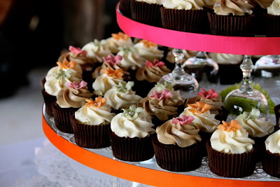 The cupcake flavors included a custom flavor they requested. A citrus cake with citrus curd filling and mild citrus buttercream frosting. The citrus filling was a combination of lemon and orange curd. It was yummy. The other cupcake flavors were 24 Carrot and Cafe Mocha.