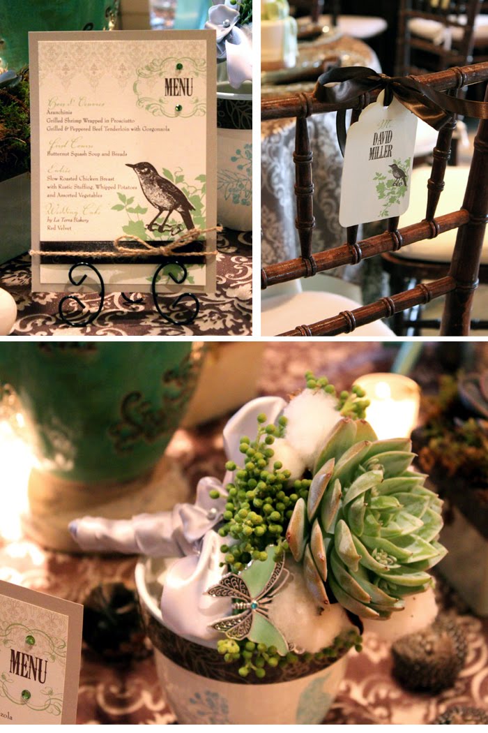 Here is the menu, name tag and another beautiful succulent bouquet.