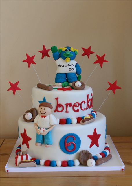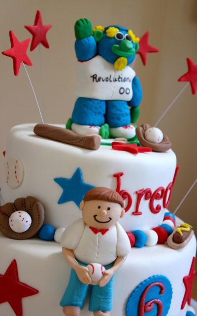 Breckin and his family are huge York Revolution baseball fans and hismom wanted a baseball theme cake with Down Town the mascot on top for his 6th birthday.