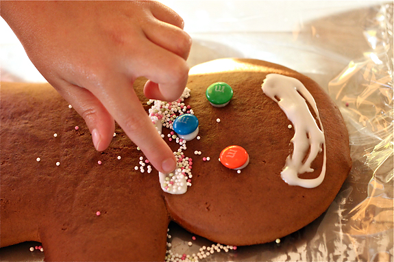 Lots of sprinkles are a must when decorating a giant gingerbread man.