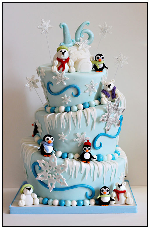 Today I delivered a wintery topsy turvey cake for a sweet 16 party. Here it is…hope you like it!