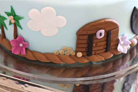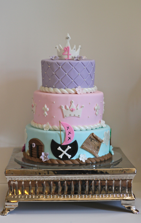 My adorable niece Reagan celebrated her 4th birthday with a princess and pirates theme. It was a challenge trying to combine the two themes together and create a cohesive look…but I think the cake turned out just right 🙂