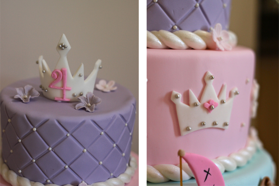 My adorable niece Reagan celebrated her 4th birthday with a princess and pirates theme. It was a challenge trying to combine the two themes together and create a cohesive look…but I think the cake turned out just right 🙂