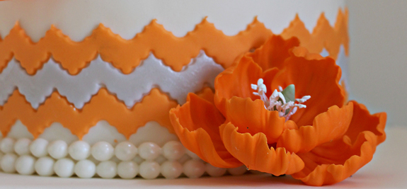 Vy and her sister Alys had a specific vision in mind. Damask, black, orange (mom’s favorite color), chevron print and big orange peonies.